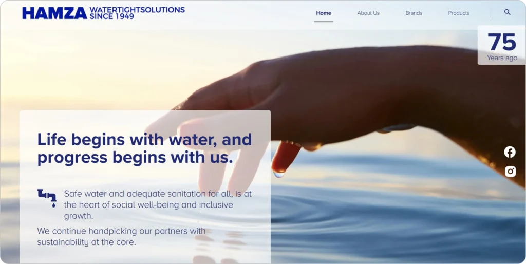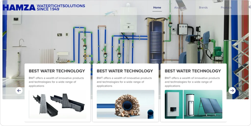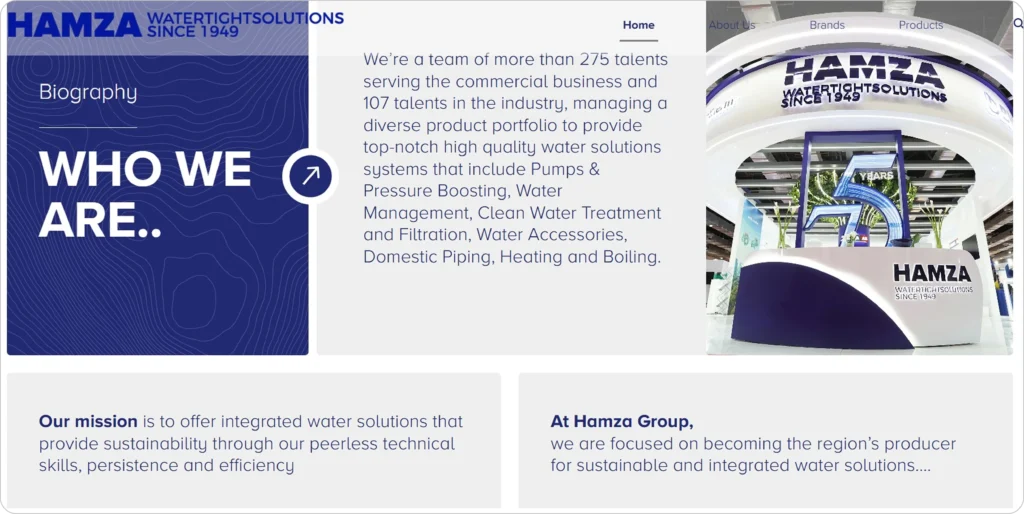 موقع Hamza Group، الذي تم تصميمه وتطويره بواسطة WebOps، يعرض تاريخ الشركة ورسالتها وتشكيلة منتجاتها من خلال منصة راقية وغنية بالمعلومات، تم إعدادها لتعزيز هويتهم كروّاد في حلول المياه المستدامة.
