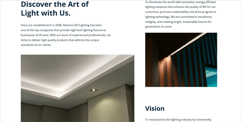 تأسست شركة Maxima Lighting عام 2008، وهي شركة مصرية متخصصة في حلول الإضاءة المبتكرة وعالية الأداء. تقدم مجموعة متنوعة من المنتجات، بما في ذلك إضاءة الحبال LED، وإضاءة الشرائط LED، وإطارات السبوتات البلاستيكية، والمصابيح LED، وكشافات الزينة. قامت WebOps بتصميم وتطوير موقع إلكتروني يعرض مجموعة منتجاتهم المتنوعة من خلال واجهة حديثة وسهلة الاستخدام تبرز الجودة والابتكار، مما يساعد Maxima Lighting على التواصل بفاعلية مع العملاء والشركاء.