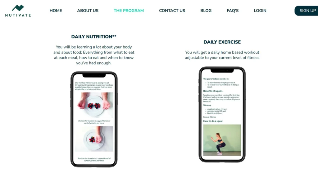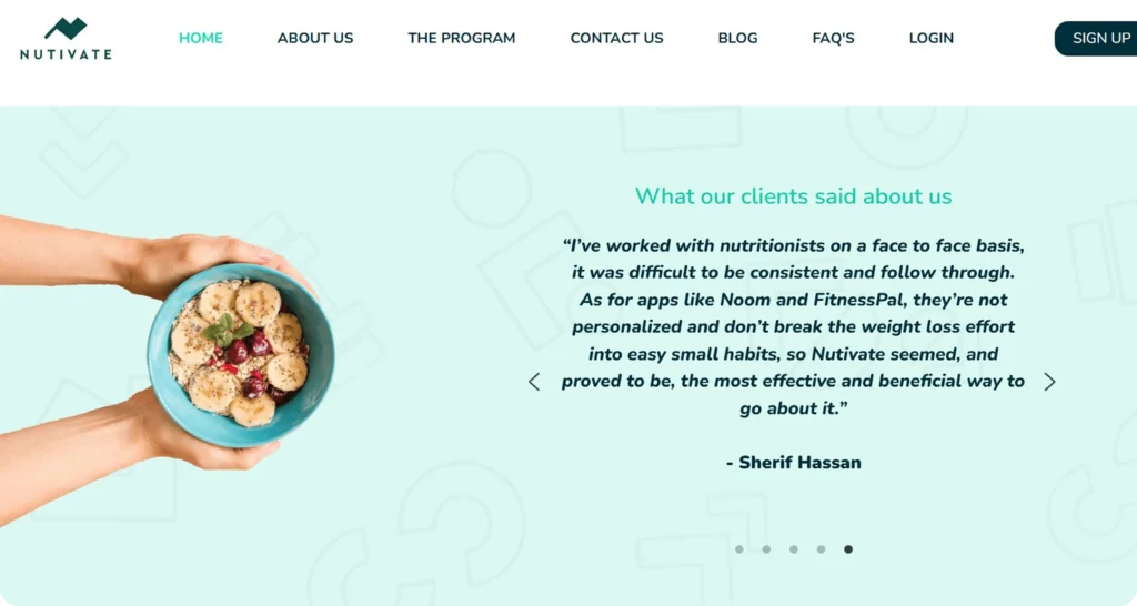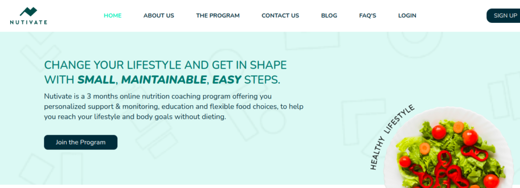 برنامج Nutivate هو برنامج تدريب غذائي عبر الإنترنت مدته 3 أشهر، يقدّم دعمًا شخصيًا، وتثقيفًا، وخيارات غذائية مرنة لمساعدة المستخدمين على تحقيق أهدافهم في أسلوب الحياة والجسم دون اتباع أنظمة حرمان. قمنا بتصميم وتطوير الموقع ولوحة تحكم المستخدم لعرض البرامج بوضوح، وإرشاد المستخدمين خلال عملية التسجيل، وتوفير تجربة تفاعلية مريحة. تتيح لوحة التحكم للمستخدمين تعلّم العادات الصحية، ومتابعة التمارين اليومية، وتتبع تقدمهم طوال فترة البرنامج.