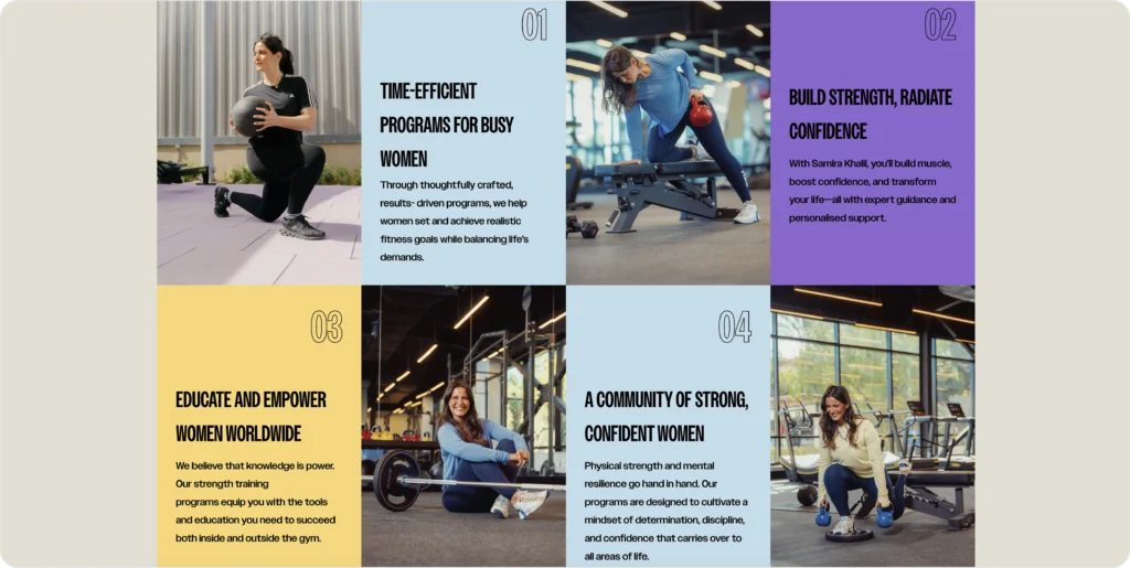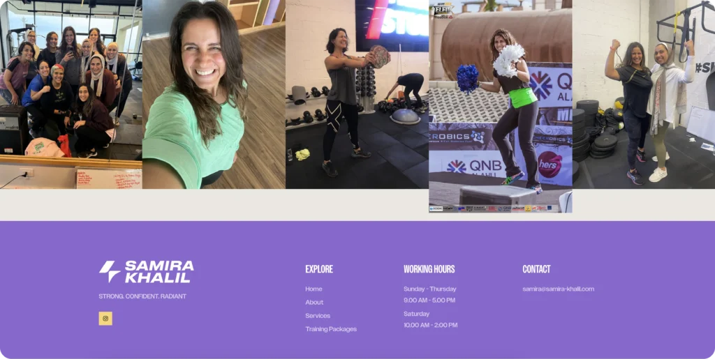 يقدّم موقع سميرة خليل مساحة رقمية مميزة تبرز مبادراتها في التدريب على القوة البدنية وبرامج اللياقة المخصّصة للنساء. وبخبرة تزيد عن 13 عامًا في مجال التدريب الاحترافي، توفّر سميرة برامج قوة عبر الإنترنت أو بالحضور الشخصي، وورش عمل تحفيزية، وحلول عافية مصمّمة لتناسب أنماط الحياة المزدحمة. يركّز الموقع على الكفاءة، وبناء الثقة، وتعزيز روح المجتمع من خلال مجموعة واسعة من الخدمات تشمل التدريب الفردي، الحصص الجماعية الصغيرة، برامج العافية للشركات، بالإضافة إلى باقات لياقة متنوعة—وكلها مصممة لمساعدة النساء على الشعور بالقوة والحيوية والدعم.