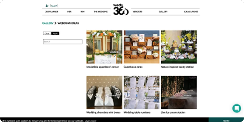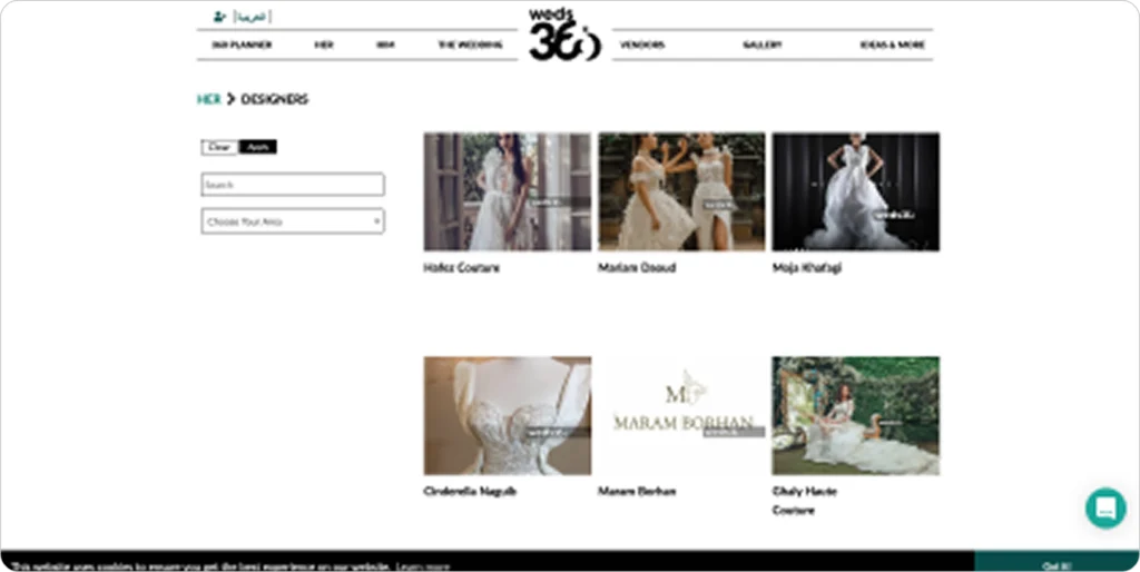 Weds360 هو منصة عبر الإنترنت تجمع كل الأدوات اللازمة لتخطيط حفل زفاف كامل ديجيتاليًا من أصغر التفاصيل إلى أروعها. إنها منصة خاصة تم إنشاؤها لحماية جميع الأزواج الجدد المخطوبين من خلال وضع كل رغباتهم ومطالبهم بين يديهم، حرفيا على بعد عدد قليل من النقرات فقط.