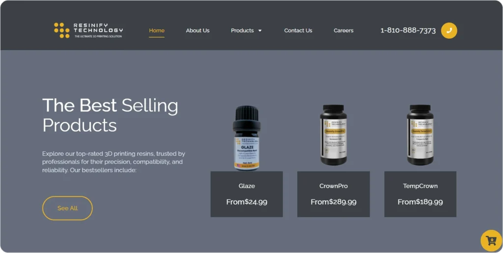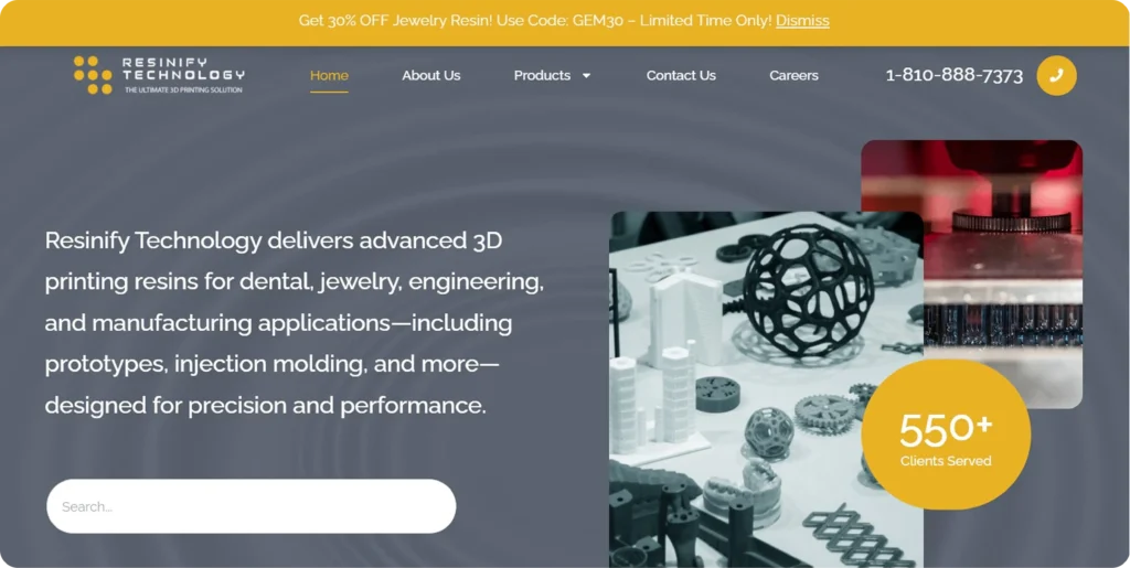 Resinify Technology is a specialist manufacturer of premium 3D printing resins crafted for sectors like dental labs, jewelry casting, engineering, and industrial prototyping. Their product lineup, including offerings like Glaze and CrownPro, is engineered to deliver outstanding precision, smooth burnouts, and clean post-processing. The site emphasizes customizable formulations, fast and reliable global shipping, and a strong commitment to quality and customer success.